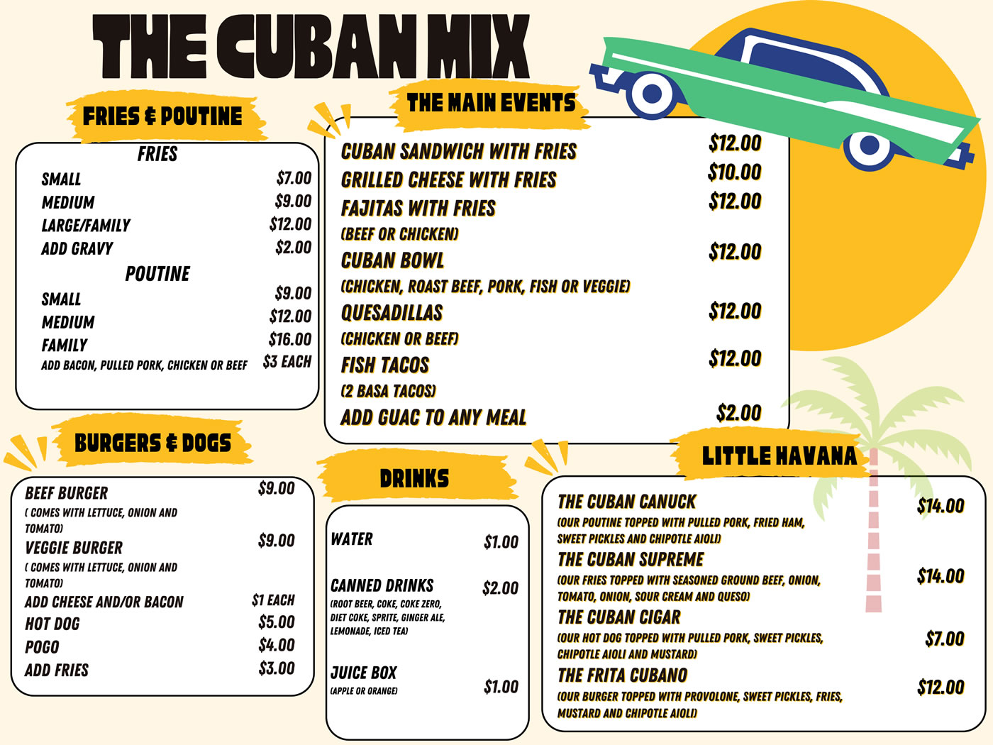 Our menu includes Cuban food and an assortment of unique poutine recipes. Bring your whole crew to our family friendly food truck in Almonte.
